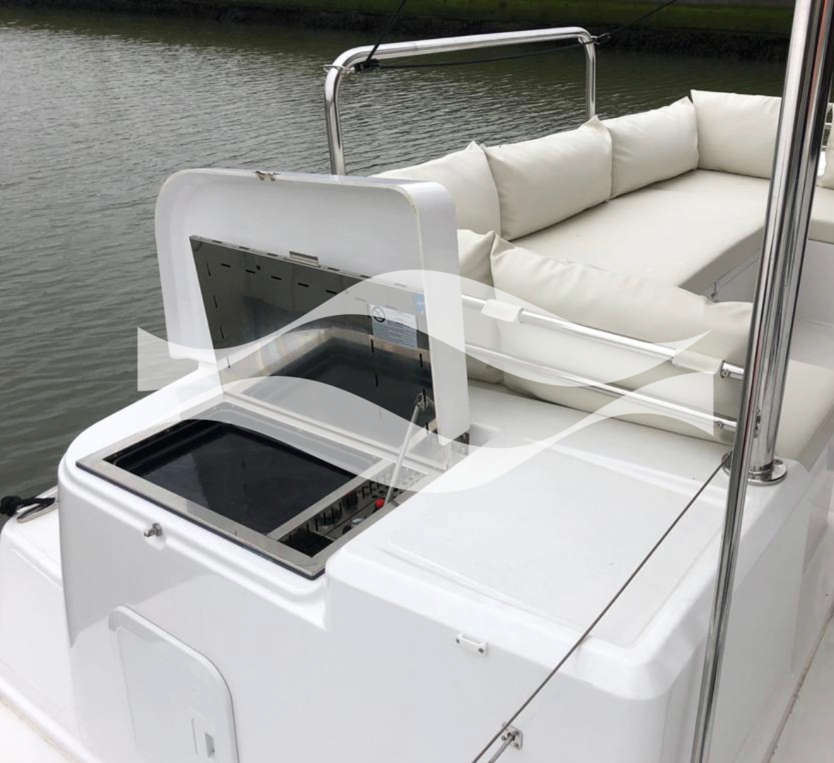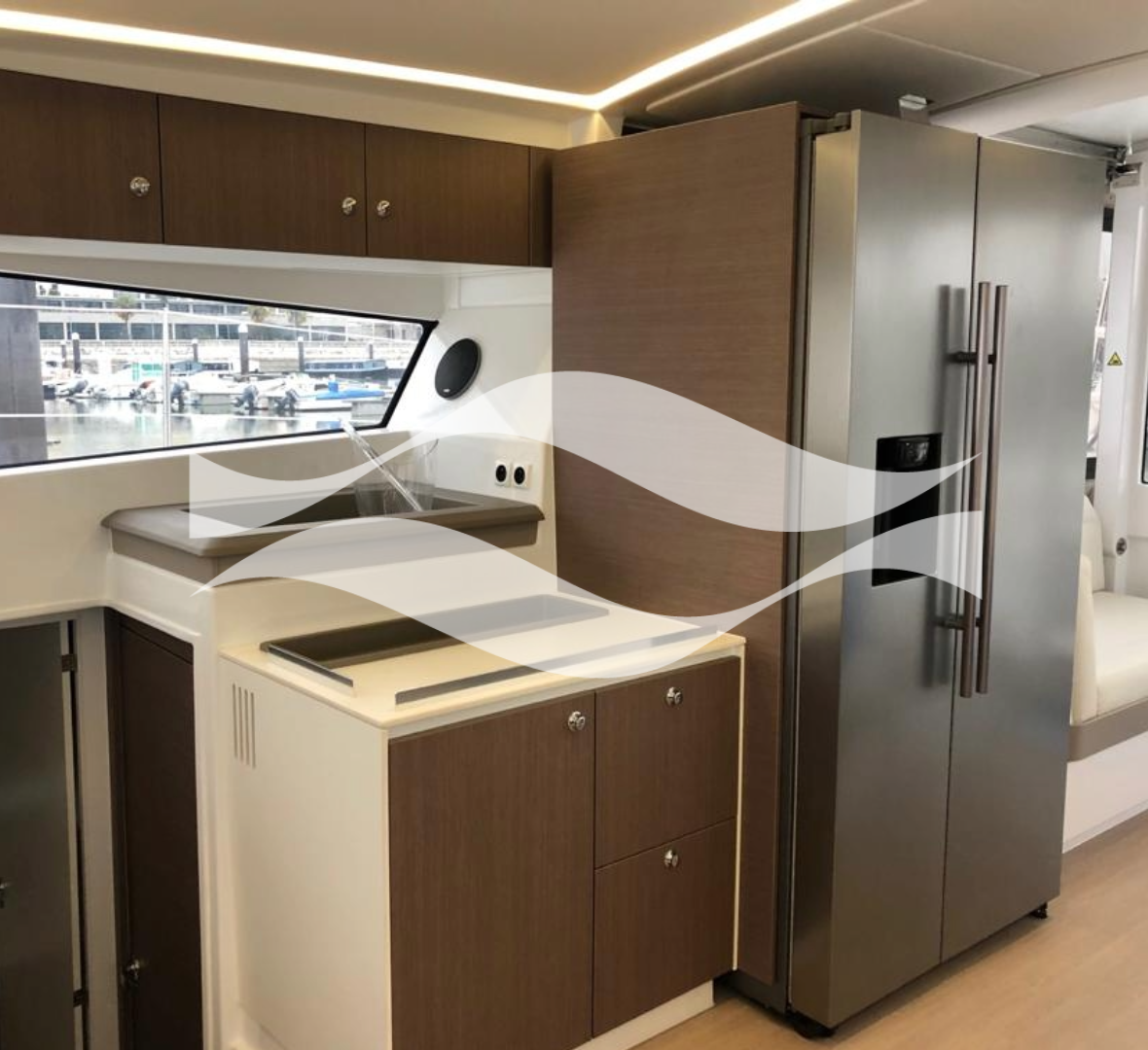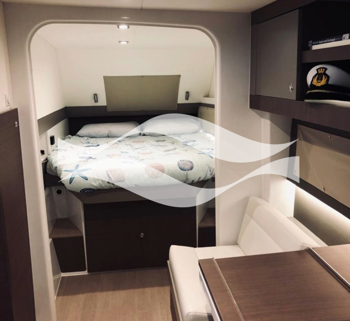 Designed to host up to 8 guests, the interior offers a modern, elegant aesthetic with exceptional headroom, ample storage, and superior ventilation. From the well-equipped galley to the private cabins, every detail supports effortless living aboard — whether for a day, a week, or a season.