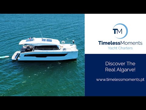 Luxury Catamaran available for private rental in Vilamoura to explore the Algarve coast Line.