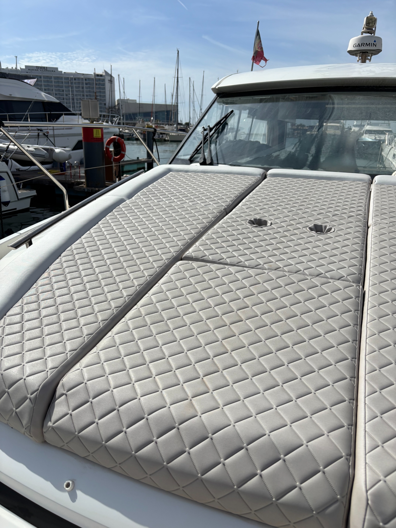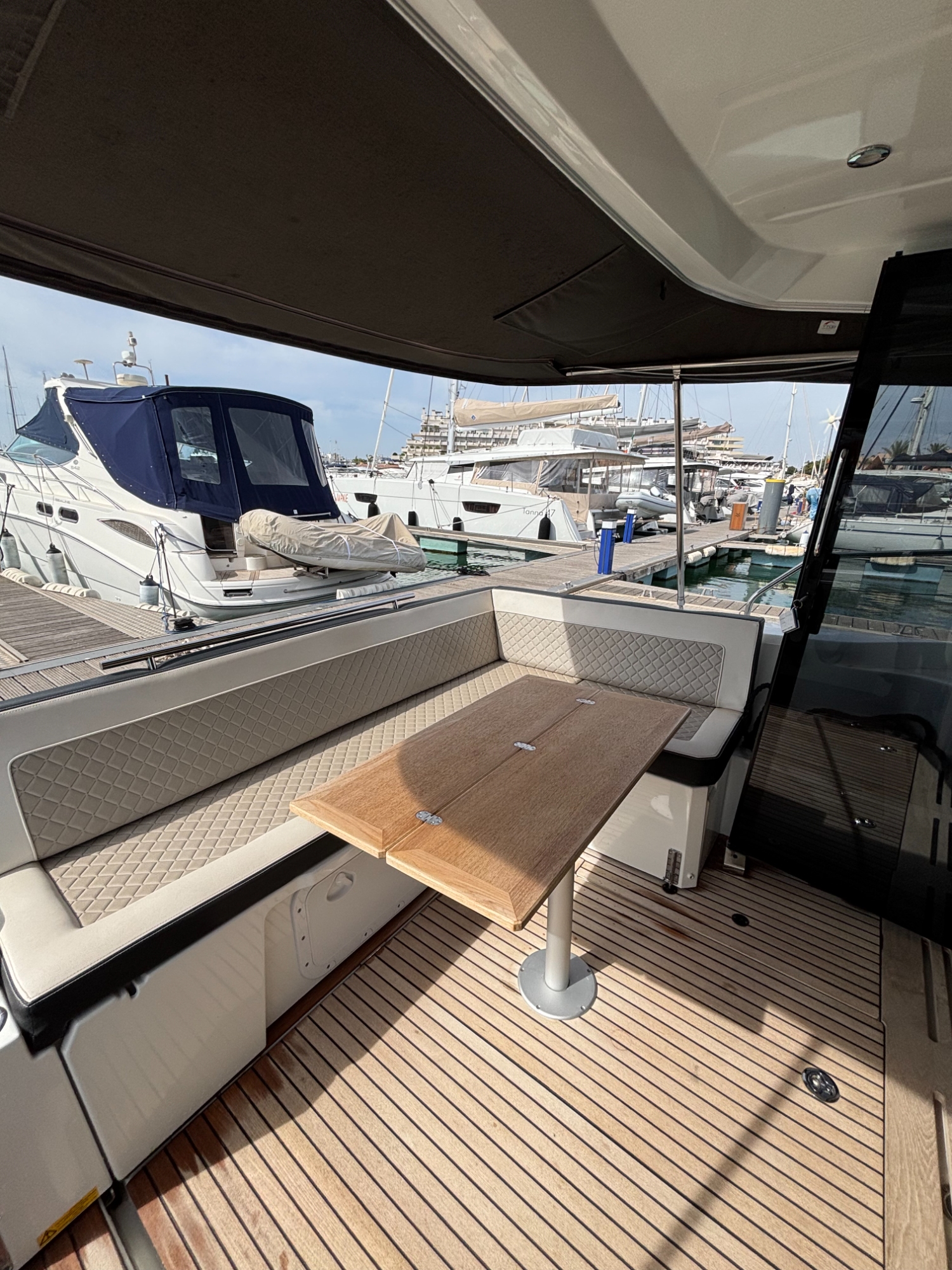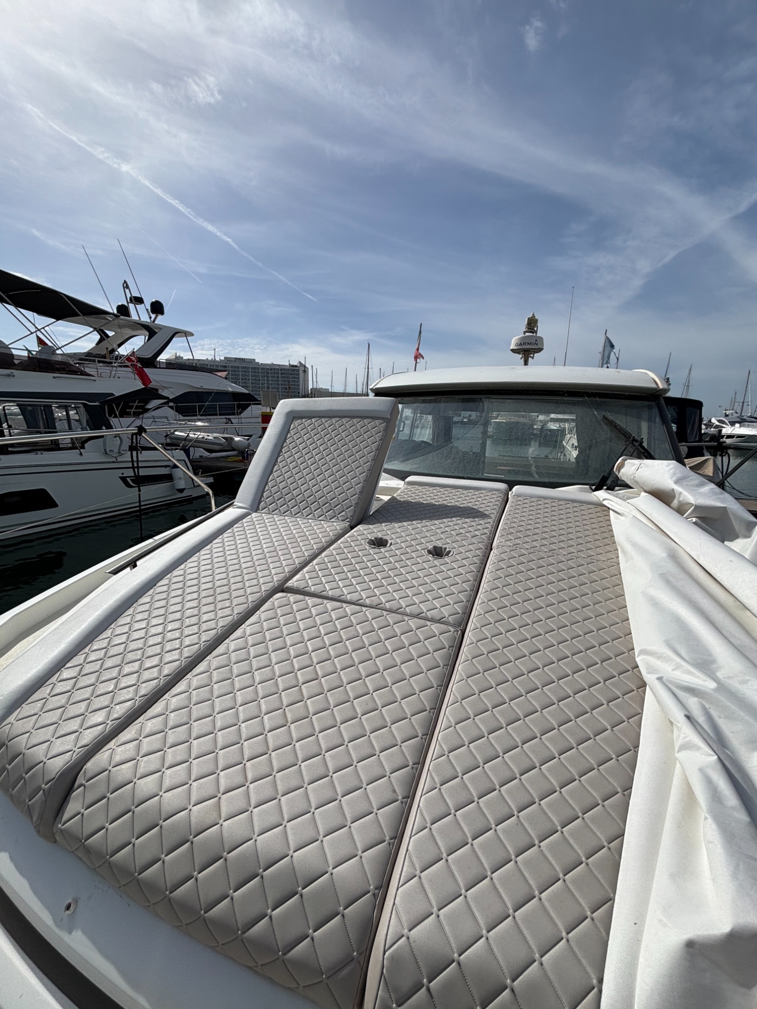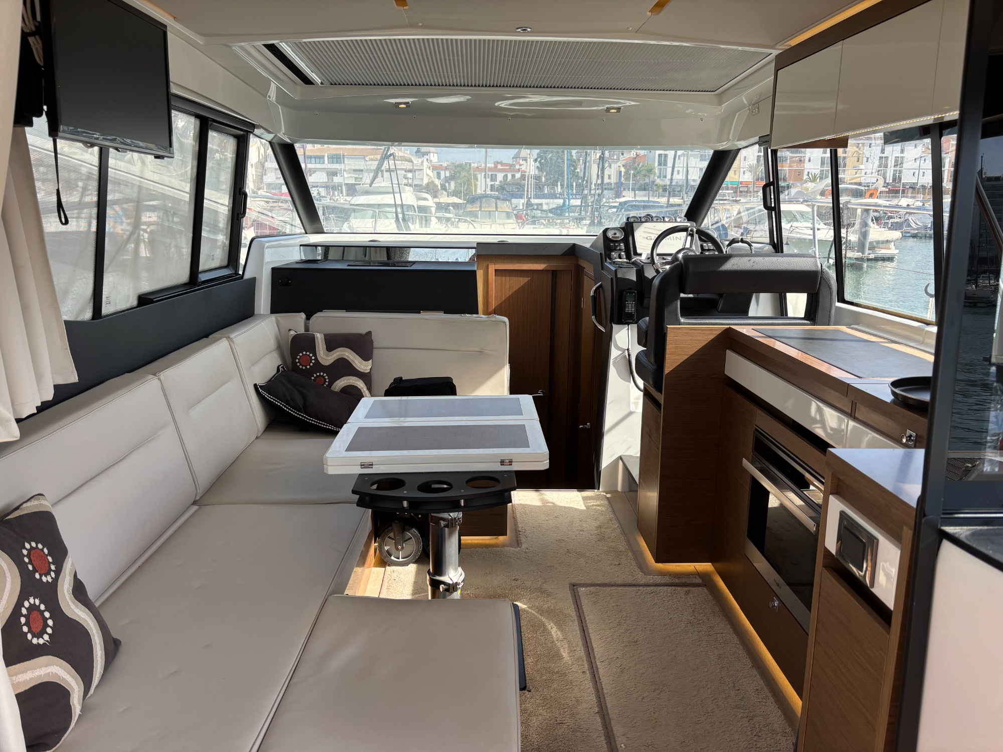 With its 11.9 m length and 523 hp from twin Volvos, the Jeanneau NC 37 delivers performance with elegance, enhanced by a sliding hard top that invites the open air at your command