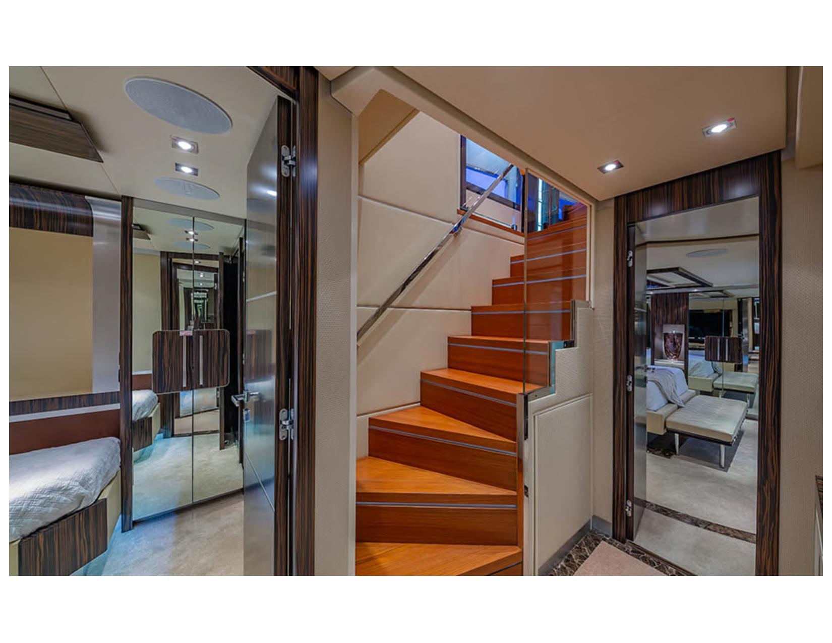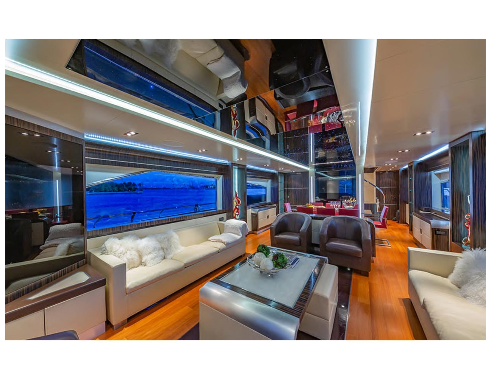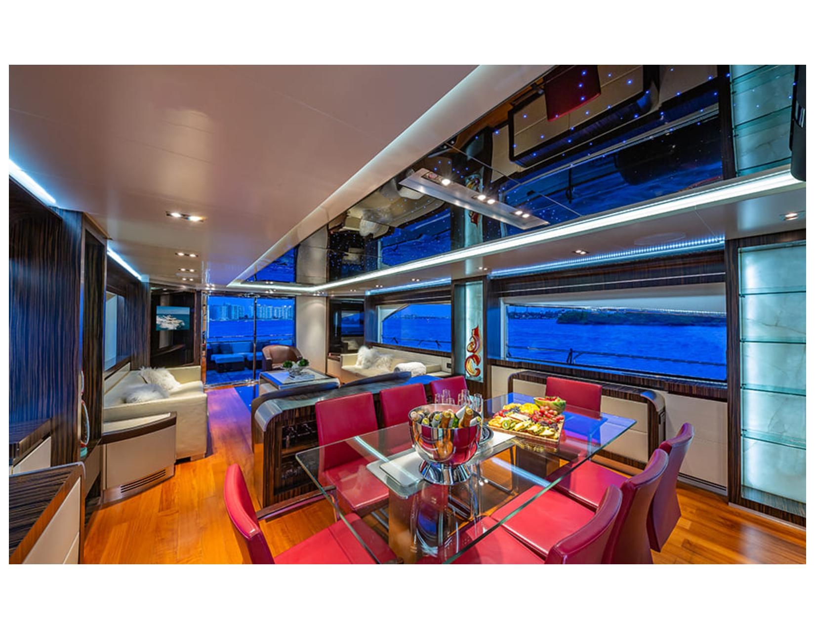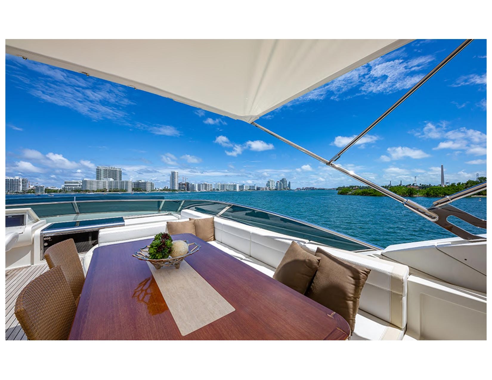 Completely refit in 2016, the 95 ft Dominator yacht accommodates up to 8 guests in 4 elegant staterooms. Her hand crafted interior is adorned with the finest selections of wood and soft furnishings meant to please discerning guests from around the world. The main salon features an open kitchen with the feel of a luxurious home. With original artwork throughout, she is truly a unique yacht and no wonder a Miami favorite.